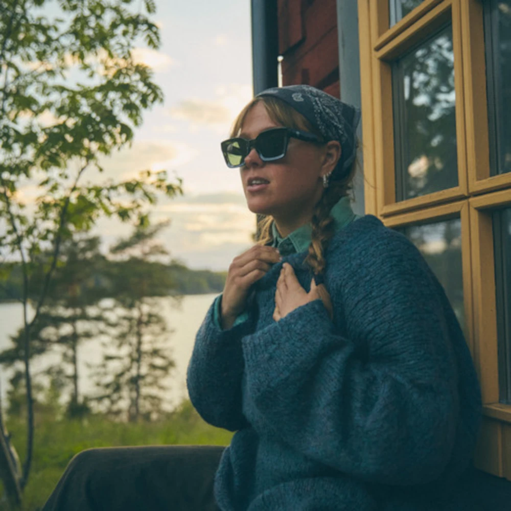 Anna. A power frame that will rule them all. Named after a power woman that also rules them all. Comes with a green lens and a smoke green frame made from 100% recycled plastic.