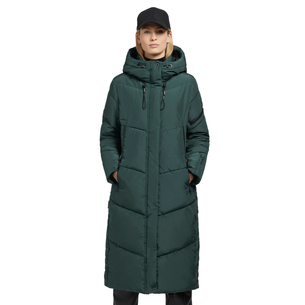 The casual fit with a calf-length cut provides the khujo coat SONJE5 for cozy warmth on cold winter days. This warmly padded quilted coat is the perfect companion in frosty temperatures and offers maximum comfort thanks to the high-closing hood with elastic drawstring, an integrated stand-up collar, pocket pouches with fleece and ribbed cuffs on the sleeve lining as well as a chin guard on the two-way zipper.