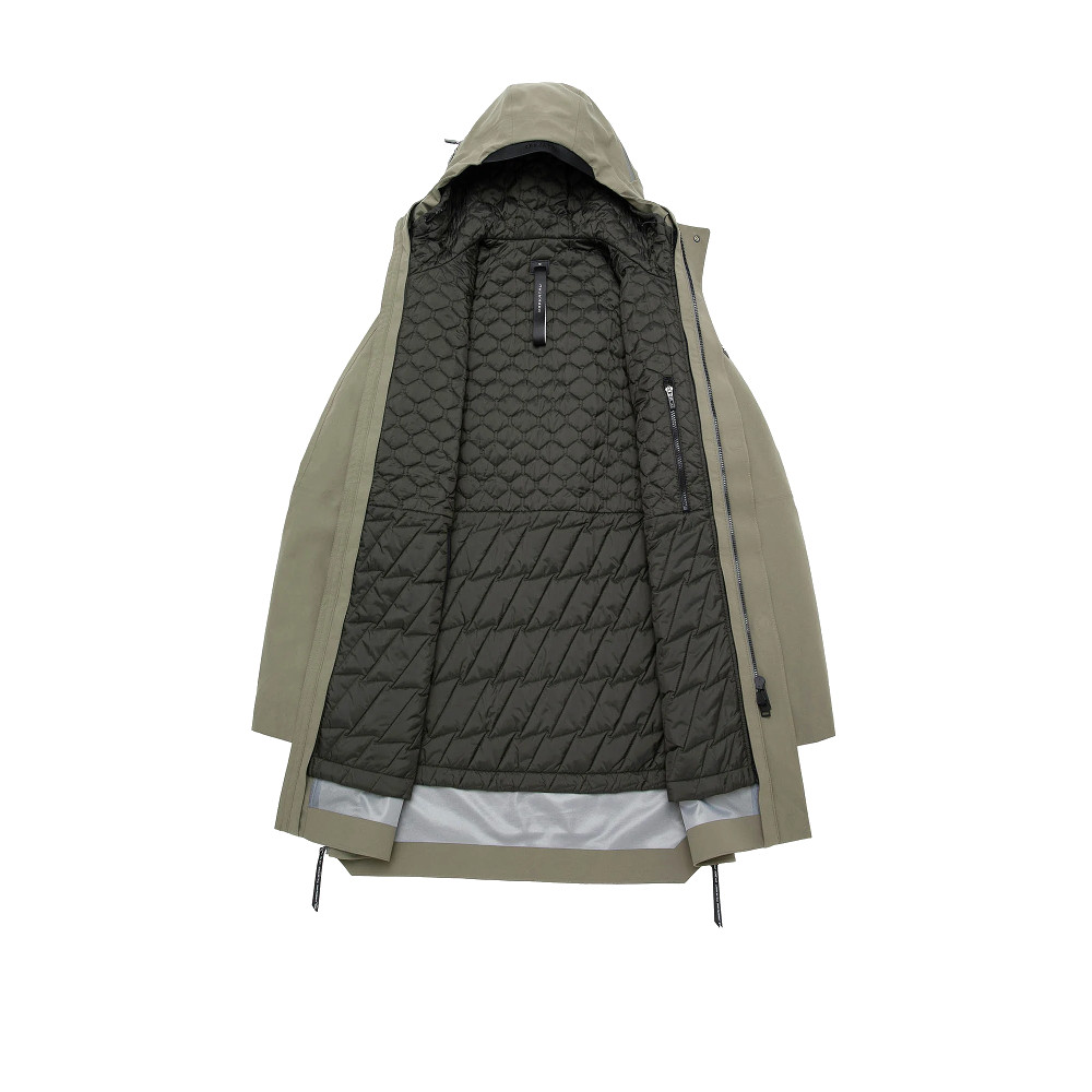 Winter waterproof PLANCK liner parka with fully taped seams. It features zip side slits with additional ventilation and a detachable inner jacket. It is based on eco-friendly insulation made of recycled plastic bottles. The style is named after the physicist Max Planck, the founder of quantum physics.