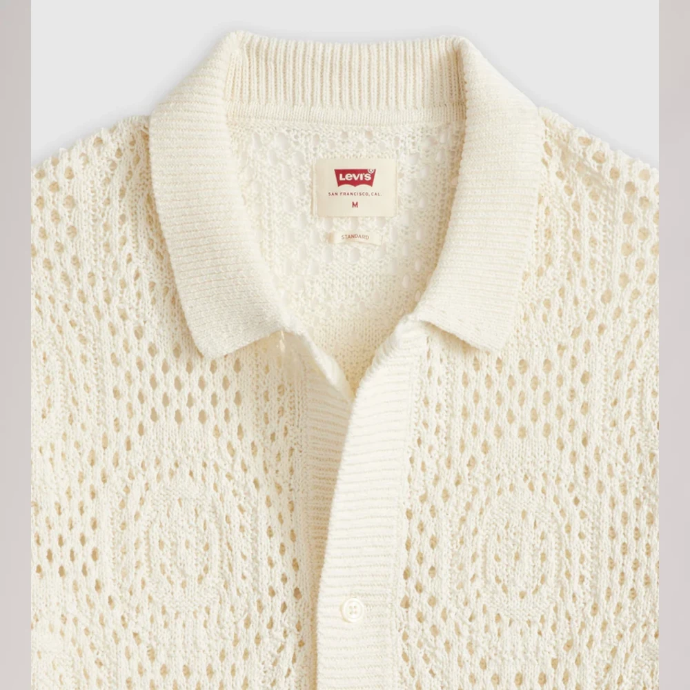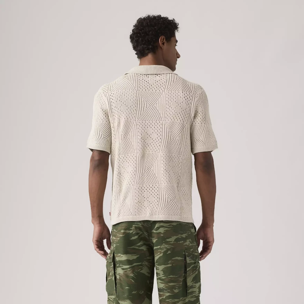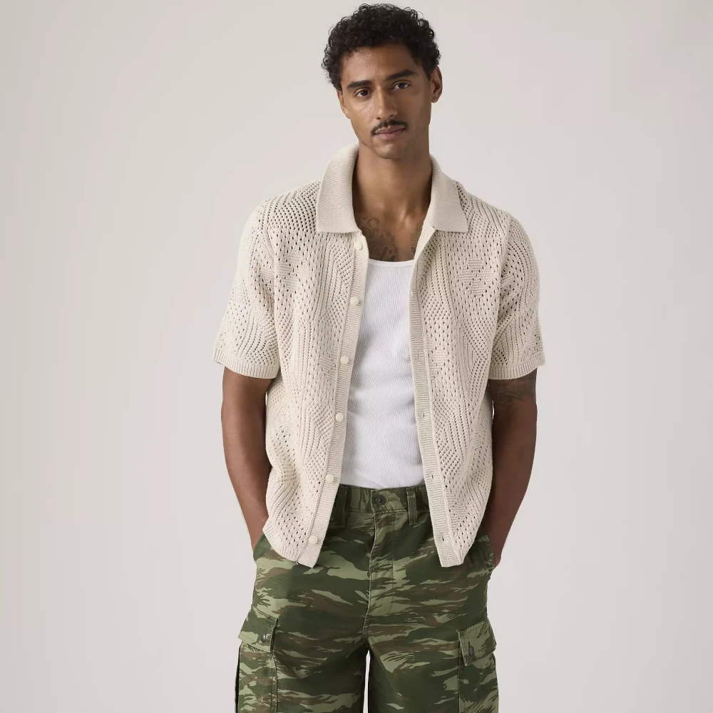 The classic camp shirt just got more comfortable. Levi’s® Sweater Camp Shirt features a standard fit, a point collar and pointelle crochet.