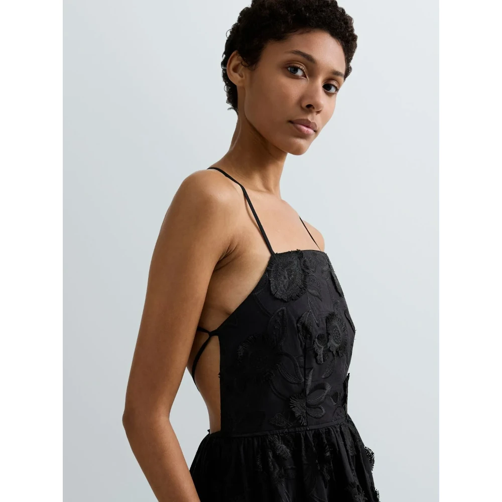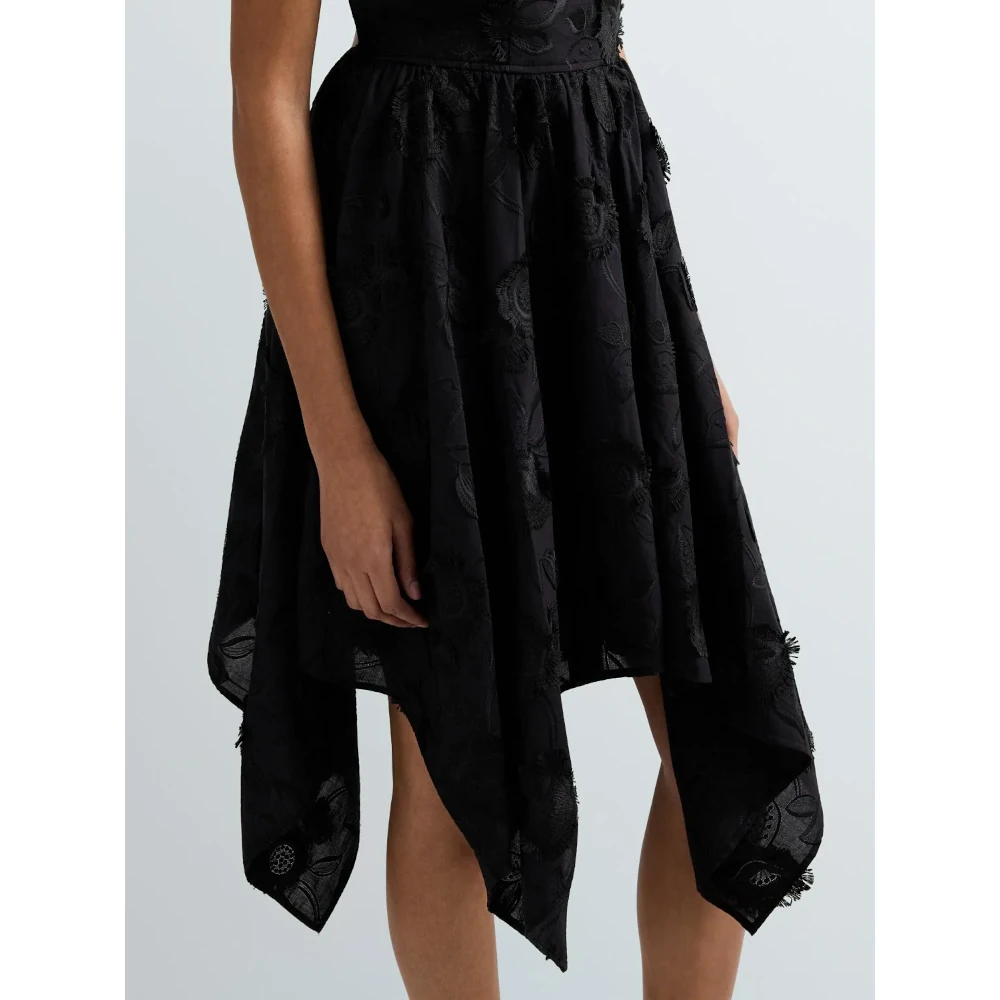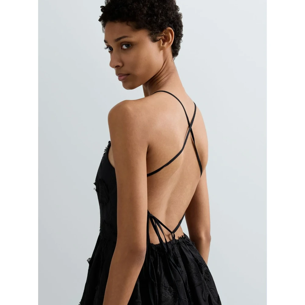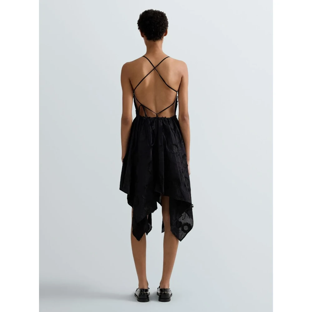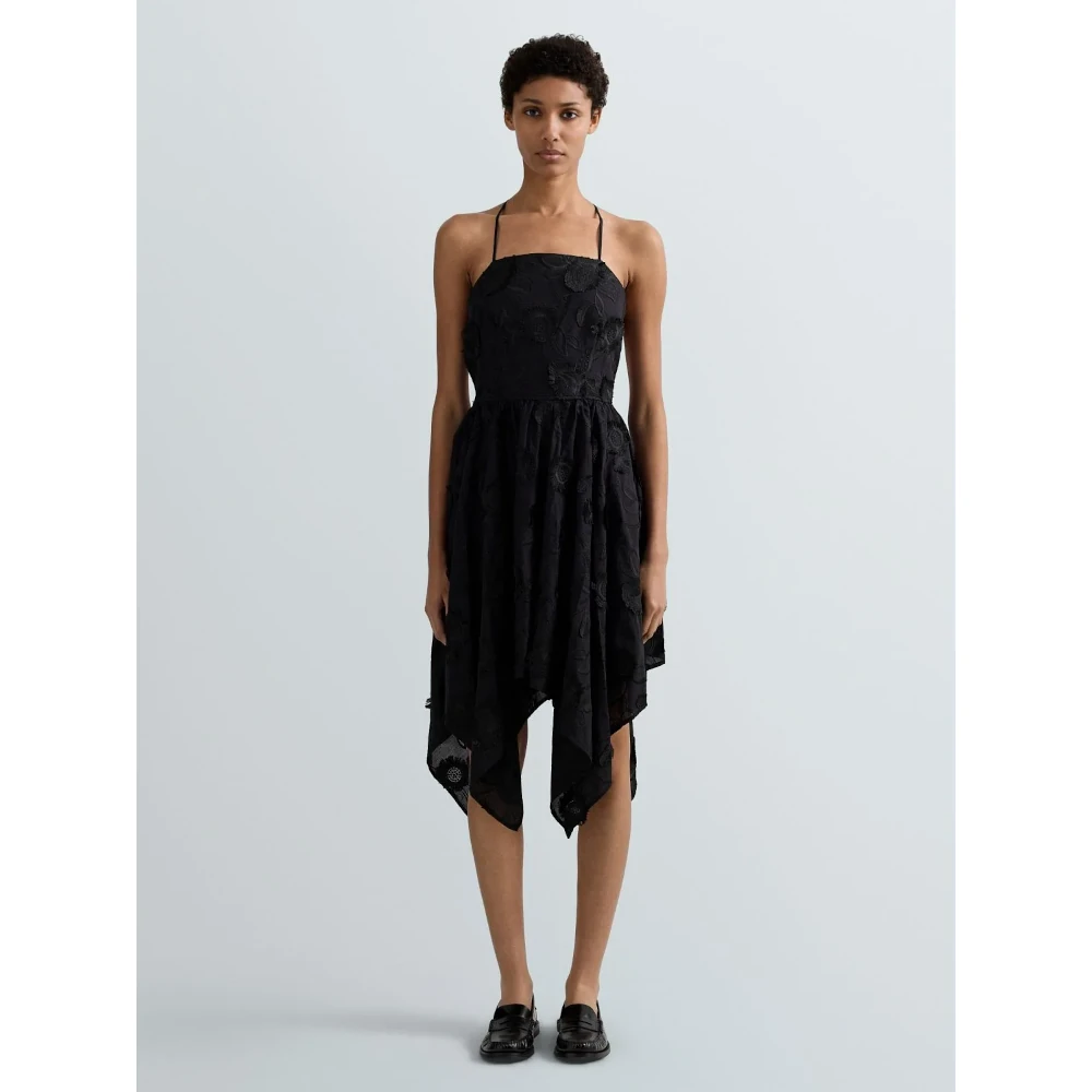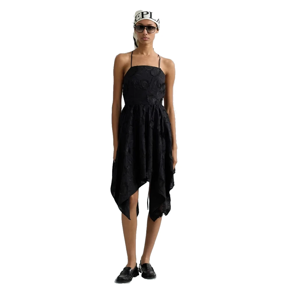 Replay Short Asymmetrical dress floral cotton-blend. Decorated all over with a refined matching fil-coupé floral pattern with a slightly raised texture. This cotton-lined style features a straight neckline. With slim straps that cross over and tie at the back, leaving the back bare. The piece also features a stretch waist with small ruches. And a pleated skirt with an asymmetrical cut on the hem.