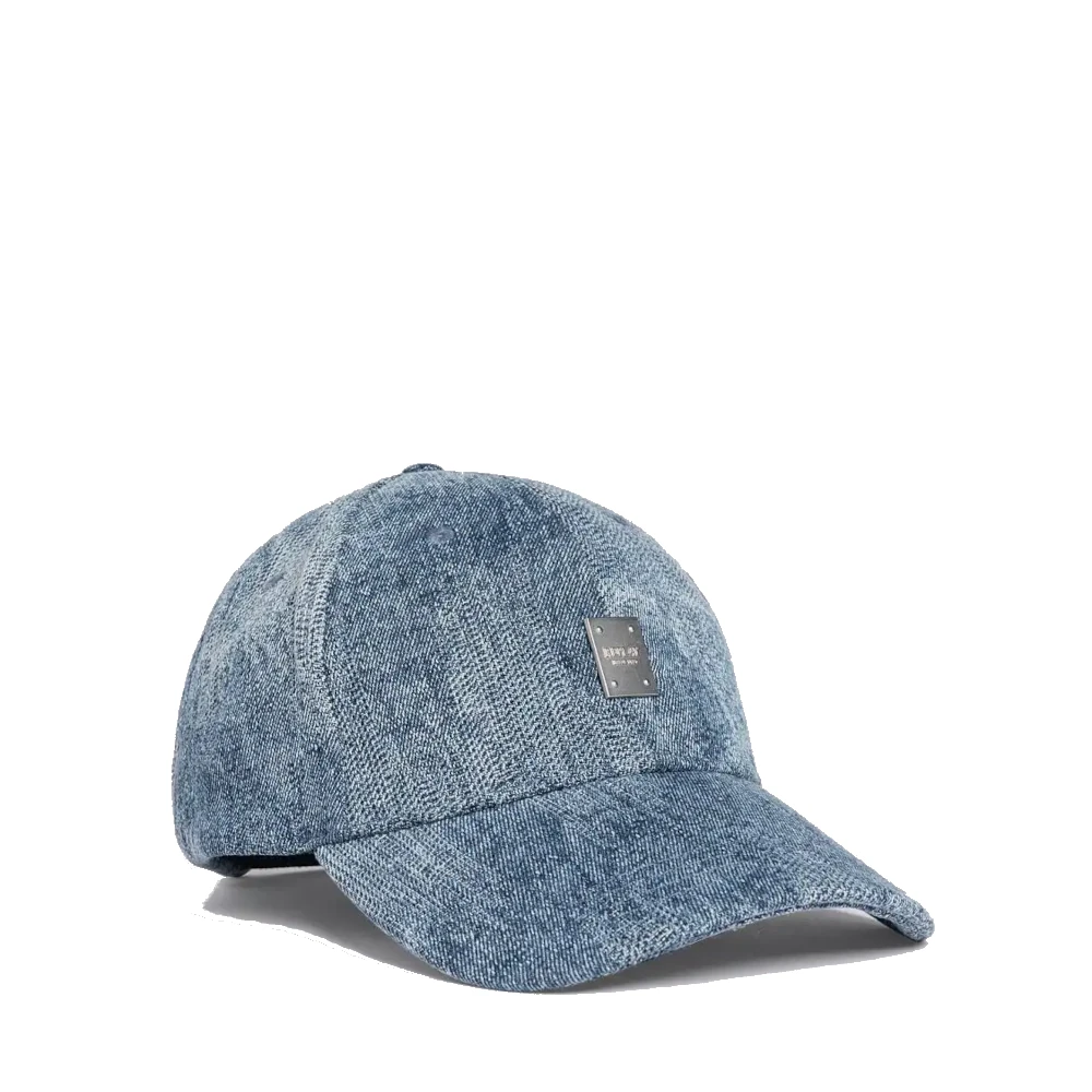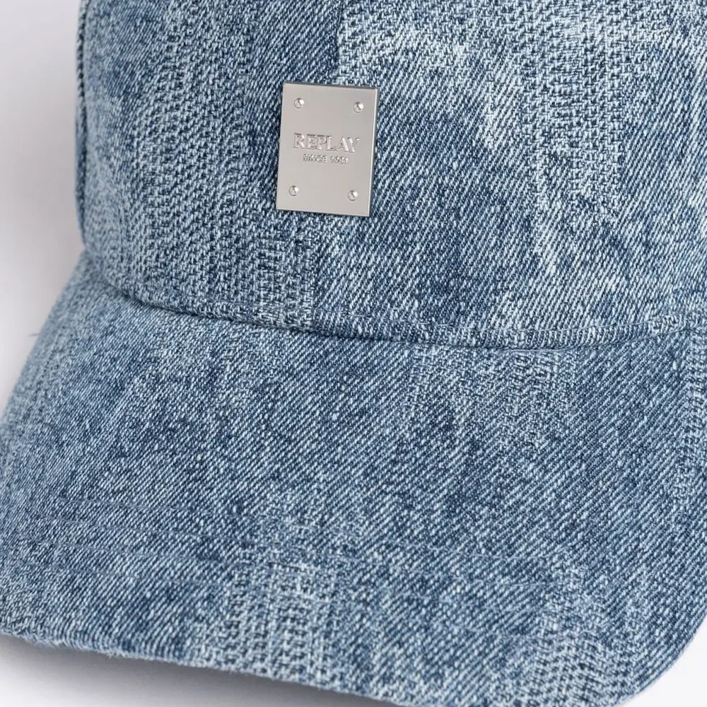 Washed cotton-blend denim baseball cap with a curved peak. Metal tag on the front with the embossed Replay logo. Adjustable buckle fastening.