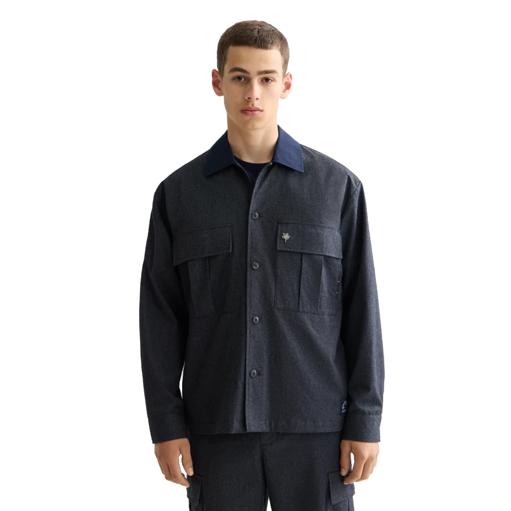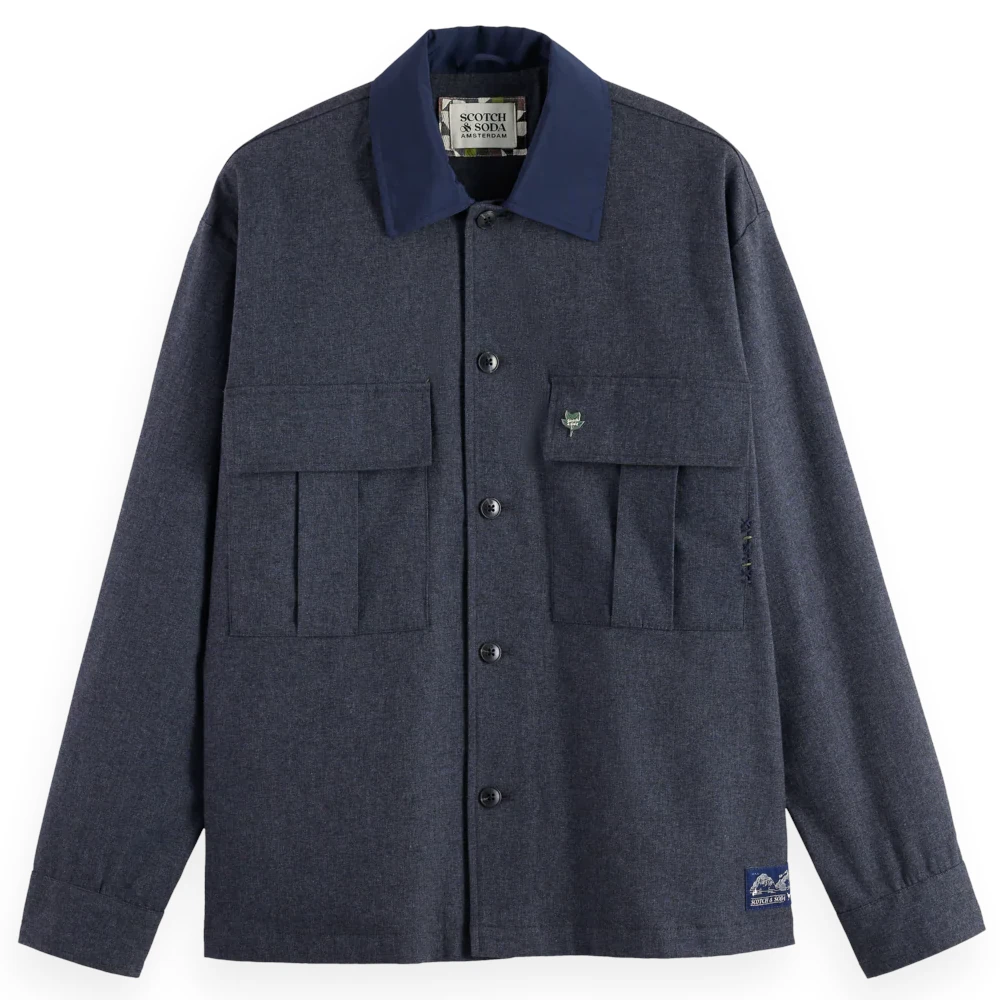 A melange cotton-blend overshirt, finished with nylon trims and clean utility touches
