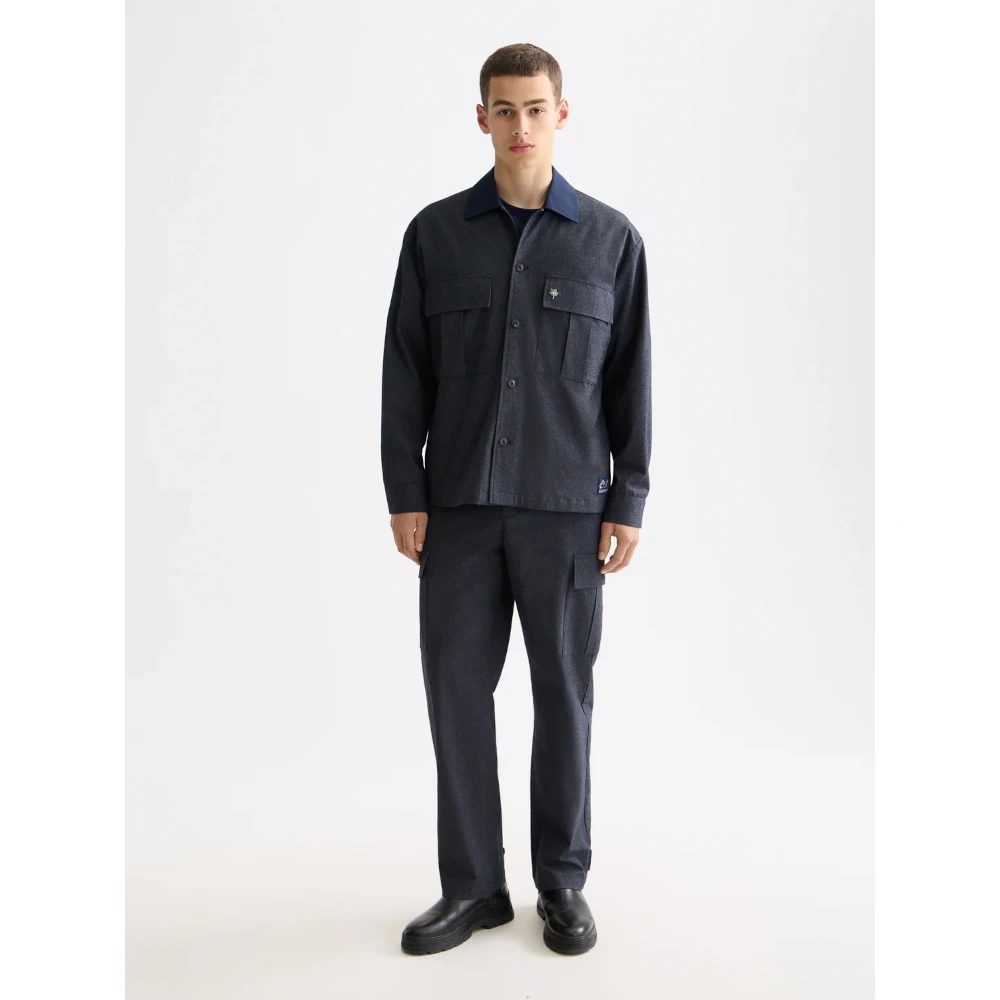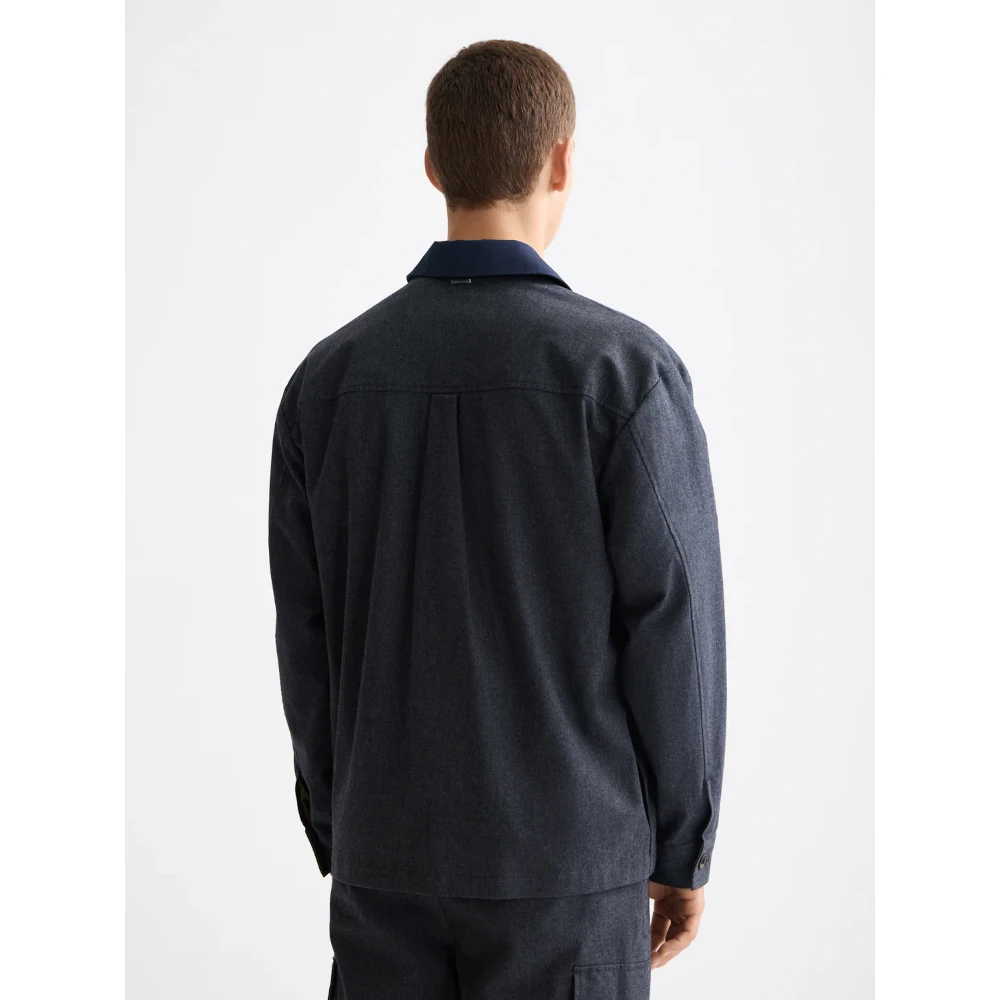A melange cotton-blend overshirt, finished with nylon trims and clean utility touches.